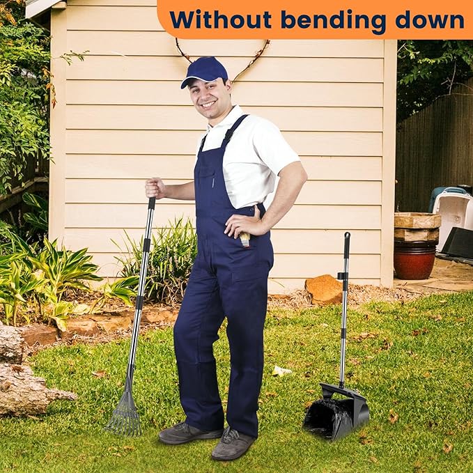 - 【Multi-site Available】The poop collector comes with a rotating bin and rake, which can be used on grass, concrete floors, gravel and dirt, perfect for picking up pet feces, leaves and garden debris.