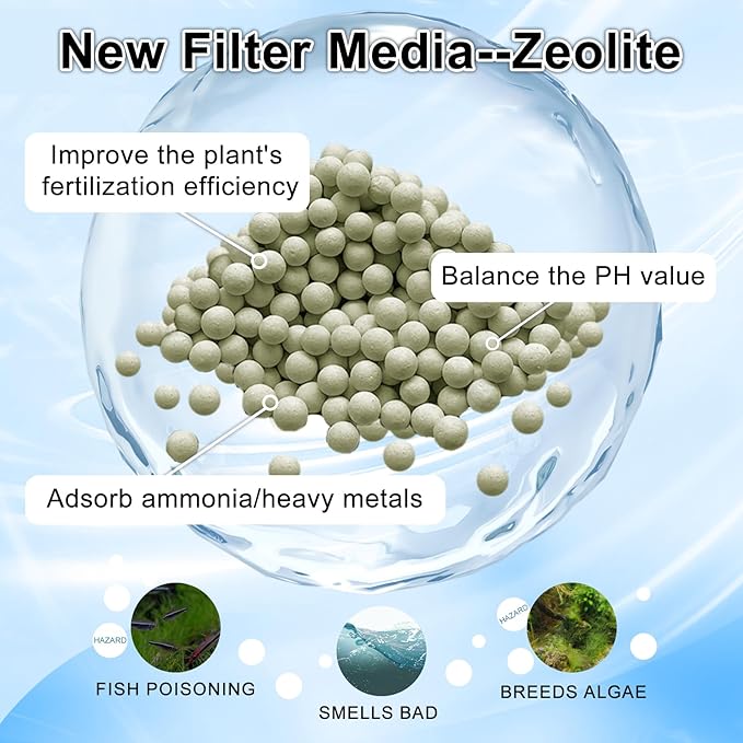 - Efficacy of Zeolite: Adsorb ammonia, heavy metals and other harmful components. Balance the PH value of the water body. Improve the fertilization efficiency make your aquatic plants, nitrifying bacteria grow faster, live more comfortable and more health