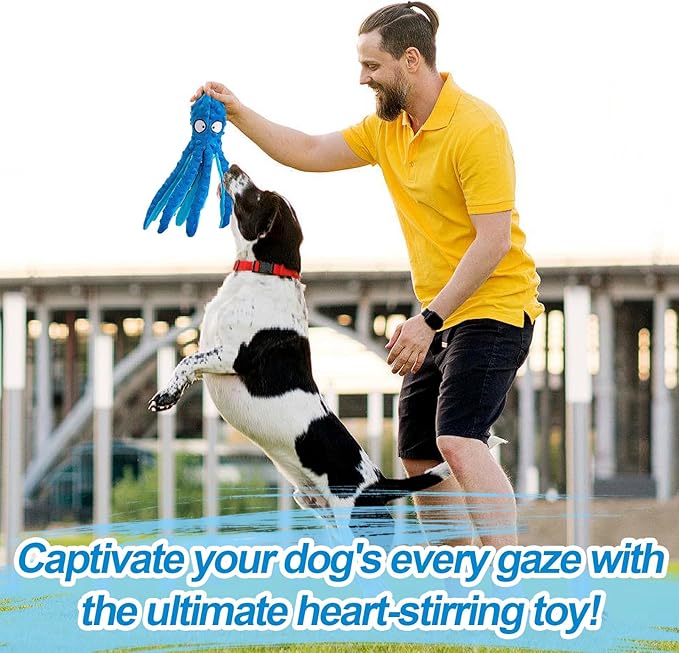 - Adorable Octopus Dog Toy: Our octopus toy comes in vibrant colors and is designed with an adorable octopus shape that dogs find irresistible. Eight legs design makes it perfect for games of tug-of-war and fetch. The design ensures the toy is easy for your pet to carry, throw, and roll around. Whether you have a puppy, small dog, medium dog, or large dog, this toy will bring joy and excitement to playtime.