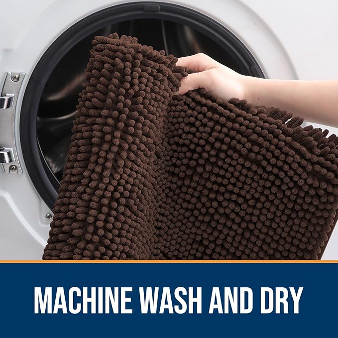 OLANLY Dog Door Mat for Muddy Paws 70x24, Absorbs Moisture and Dirt, Absorbent Non-Slip Washable Doormat, Quick Dry Chenille Mud Mat for Dogs, Entry Indoor Entryway Carpet for Inside Floor, Brown