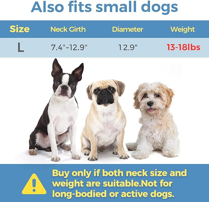 - [Important Size Notice]: L Fits Large Cats & Small Dogs. Not for Long-Body or Active Dogs. Best for Neck or Upper Body Wounds. Neck 7.4–12.9", Width 12.9". Please Measure Your Pet Very Carefully!