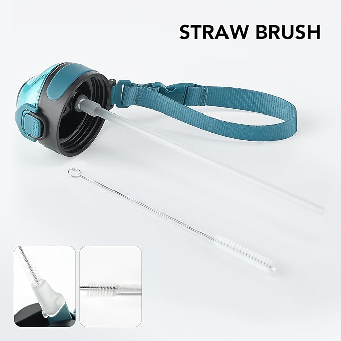 - Humanized Design: The one-hand operation button allows for easy access to water. Highly suitable for boys and girls, and all ages. The flip-top lid of the insulated bottle is used a secure lock, making it dust-free and leak-proof. The included straw brush makes maintaining your bottle's cleanliness uncomplicated and efficient.