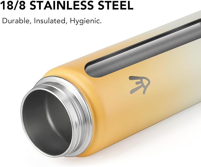 - Premium Quality: Through the upgraded, 32 oz insulated water bottle’s inner wall is made of food-grade 18/8 Stainless steel, and the outer wall is 201 stainless steel. Rest assured, our leakproof sports water bottle is 100% BPA-free, non-toxic, odorless, rust-proof, and absolutely safe for daily use.
