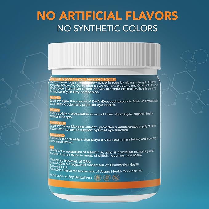 - ELEVATE YOUR DOG'S VISION: Elevate your dog's world with NOVEHA Golden Age Eyesight Chews. Our unique blend of Lutein can enhance your dog's perception. Watch as your furry companion explores their surroundings with newfound vibrancy and confidence.