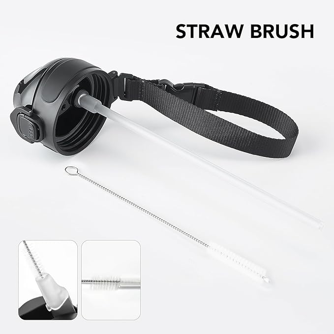 - Humanized Design: The one-hand operation button allows for easy access to water. Highly suitable for boys and girls, and all ages. The flip-top lid of the insulated bottle is used a secure lock, making it dust-free and leak-proof. The included straw brush makes maintaining your bottle's cleanliness uncomplicated and efficient.