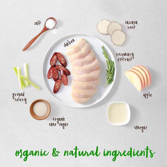 - ALL NATURAL: Our Artisanal Chicken Apple Sausage provides a boost of antioxidants from apples. Each piece is slow cooked in our ovens to bring out the flavors your dog will love.