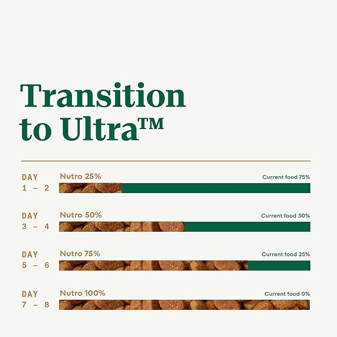 - Radiant Skin & Coat: Nutro Ultra Adult Large Breed High Protein Dry Dog Food with a Trio of Proteins from Chicken, Lamb, and Salmon contains Omega 3 & 6 fatty acids for healthy skin and a radiant coat