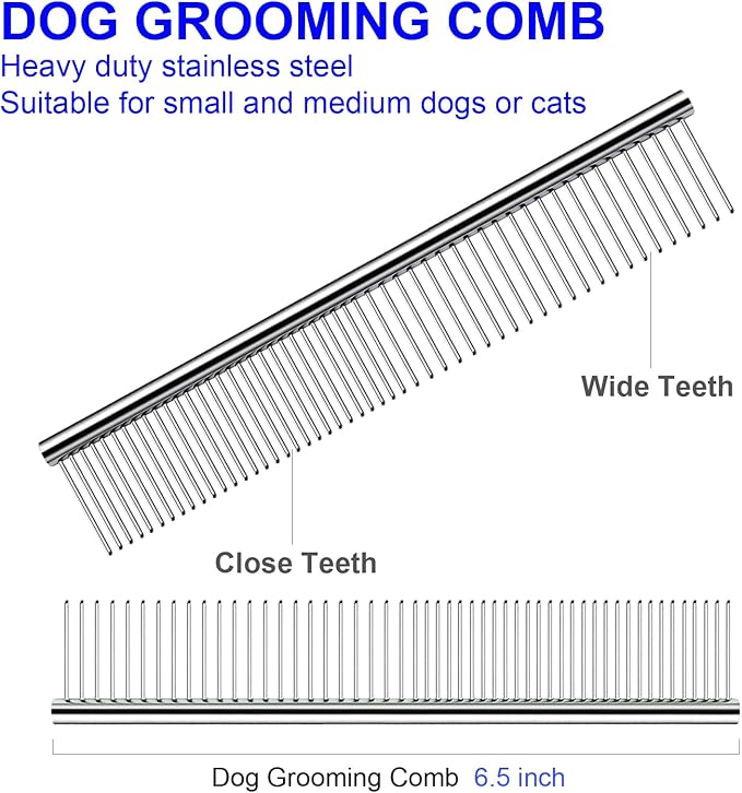 - Practical dog scissors kit: Dog grooming scissors kit includes 6.5-inch thinning shears, 6.5-inch curved scissors, 6.5-inch straight scissors, grooming comb, cleaning cloth and black case