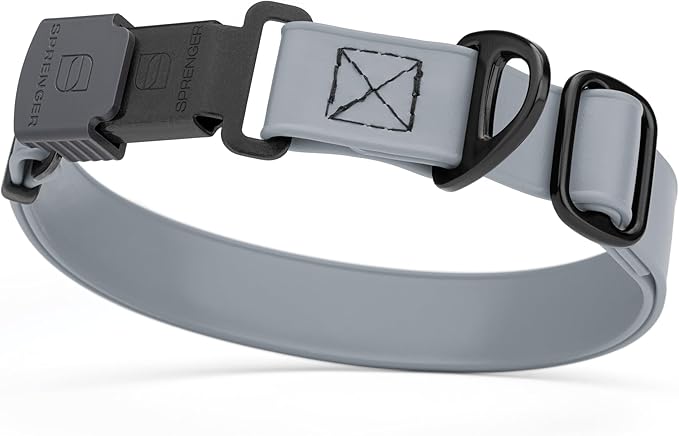Dogline Biothane Waterproof Dog Collar with Herm Sprenger Black Stainless Steel Quick Release Buckle – Heavy Duty Tactical Durable Collar for Dogs – Comfortable and Safe Pet Collar W3/4" L12-19 Gray