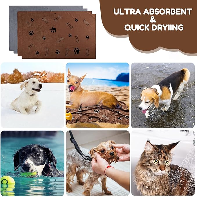Chumia 4 Pcs Dog Towels for Drying Dog Puppy Bulk Microfiber Absorbent Paw Towel Pet Bathing Supplies Quick Drying for Medium Cats Pets Shower(24 x 40 Inch,Gray, Coffee)