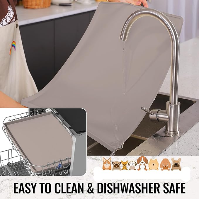 - Easy to Clean & Dishwasher Safe: Our dog bowl mats for food and water, food mat for cat bowls and dog matt for food and water bowl are top-racked dishwasher safe. Wipe pet feeding mats for dog bowls, pet water mat for dog bowl with a wet cloth and then rinse them in the sink with warm soapy water is another way to clean. If there is much water spilled on the pet matt for food and water, please kindly wipe with a dry towel first to avoid water spilling when you take up the dog water mat