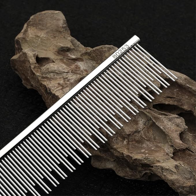 - 🐶STAINLESS STEEL COMB 6.1 in: Made of sturdy and corrosion-resistant stainless steel, this comb can reduce static electricity and will not fade over time. Built to last through multiple grooming sessions.