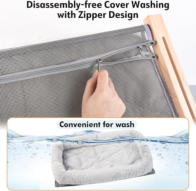 - Comfortable Cushion Bed Cover: This cat window perch is upgraded with thickened fluffy cushion bed cover, which give cats more comfort and safety while sleeping on it. The cover is made of soft plush fabric and cotton, perfect for keeping warm. Let your cats feel more comfortable while lying in this resting seat. It is of Velcro tape design, easy to remove for wash.
