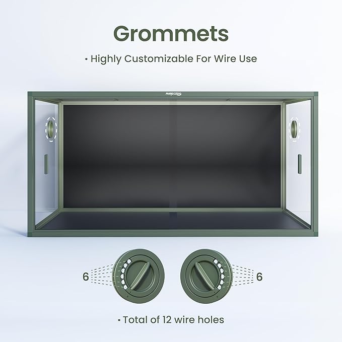 - 【Easy Maintenance】Front opening reptile terrarium with door handles included for easy cleaning & feeding. No more suction cup problems or unsightly fingerprints all over. The substrate barrier keeps the substrate in place. Our tempered glass doors are durable enough to withstand scratching.