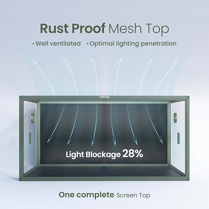 - 【Highly Adaptive】Well-lit screen top with only 28% blockage. Compatible with many reptile accessories and equipment, such as heat lamps for reptiles, reptile humidifiers, reptile misters, reptile foggers, reptile UVA and UVB. Our reptile terrarium is great for holding temps and humidity.