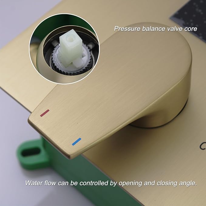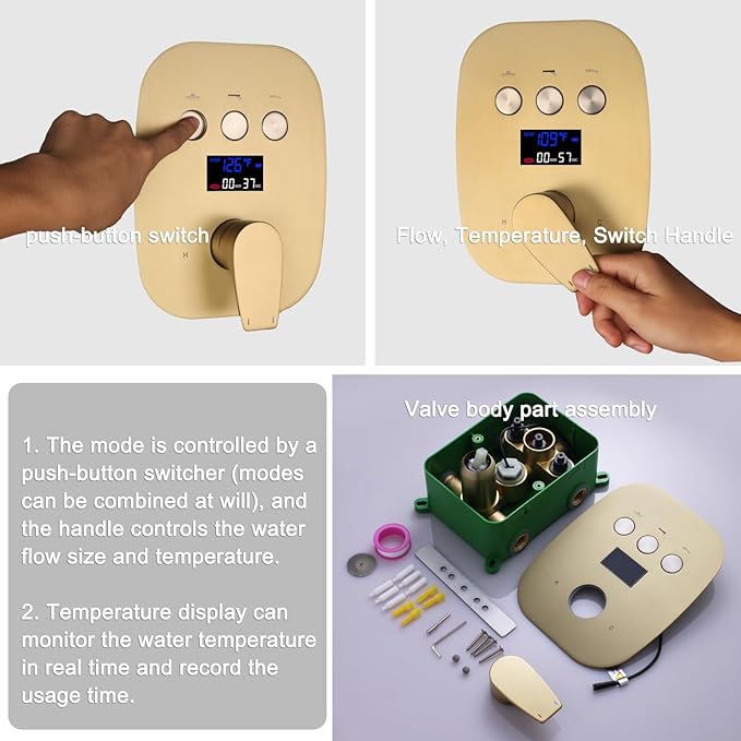 - Backflow Prevention & Stable Flow: Pressure-balancing technology prevents sudden temperature changes and ensures consistent water flow. There-mode push button and handle controls flow and temperatur