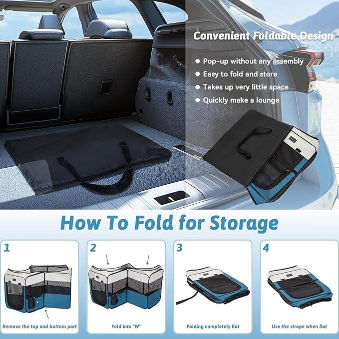 - 3-Second Setup & Travel-Ready:This lightweight pet playpen comes with a carrying bag for easy transport, sets up quickly and folds flat, includes two pockets and a water bottle holder, ideal for travel and camping with no assembly required