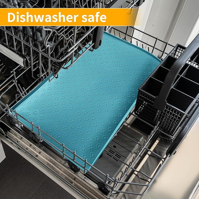 • Versatile Usage: This extra-large dog feeder mat accommodates various types of bowls and pet supplies - mats under dog food and water bowls, cat fountain, feeder stations and litter boxes for messy proof. Pet placemats are suitable for all breeds of cats, dogs, puppies and other animals.