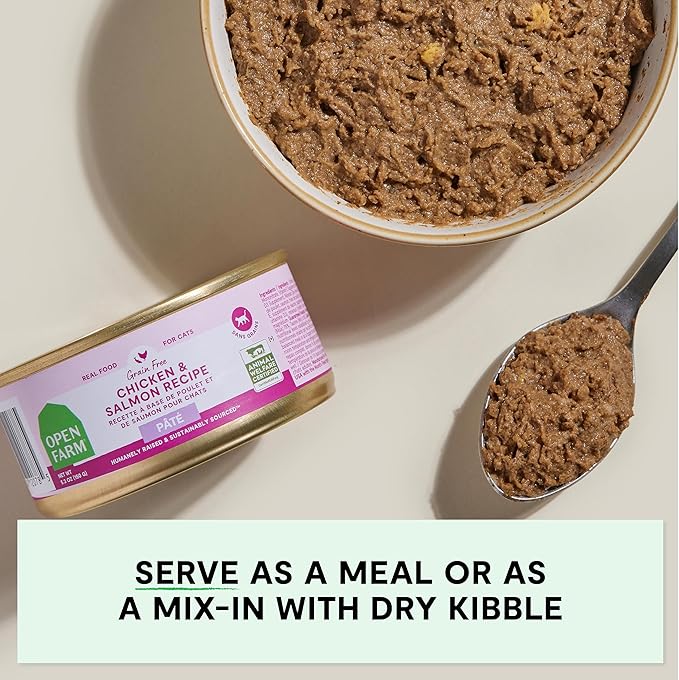 Open Farm Canned Cat Food, Paté for Complete & Balanced Nutrition, Grain-Free and Legume-Free Wet Cat Food, Chicken & Salmon Recipe, 2.8oz Cans (Case of 18)