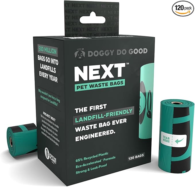 Doggy Do Good Next Pet Waste Bags, Landfill Friendly Recycled Plastic Unscented Dog Poop Bags, Leakproof, Strong, Thick, Earth Friendly for Dogs, 120 Count (120 Bags)