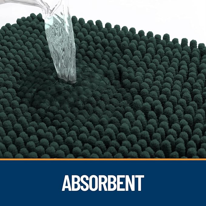 OLANLY Dog Door Mat for Muddy Paws 30x20, Absorbs Moisture and Dirt, Absorbent Non-Slip Washable Doormat, Quick Dry Chenille Mud Mat, Entry Indoor Entryway Carpet for Inside Floor, Blackish Green