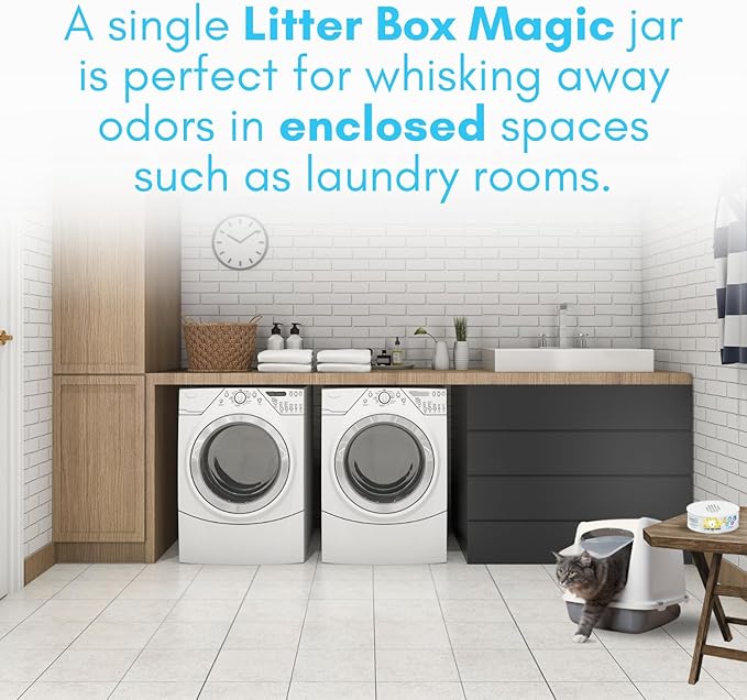 - HIGH-QUALITY LITTER BOX ODOR ABSORBER INGREDIENTS โ Our cat litter box deodorizer is made with thoughtfully selected ingredients designed to help tackle unpleasant litter box odor smells. Each ingredient is selected to help ensure your home doesn't stink like an unkept litter box. Experience a fresher space with Litter Box Magicโs litter box odor eliminator jars!
