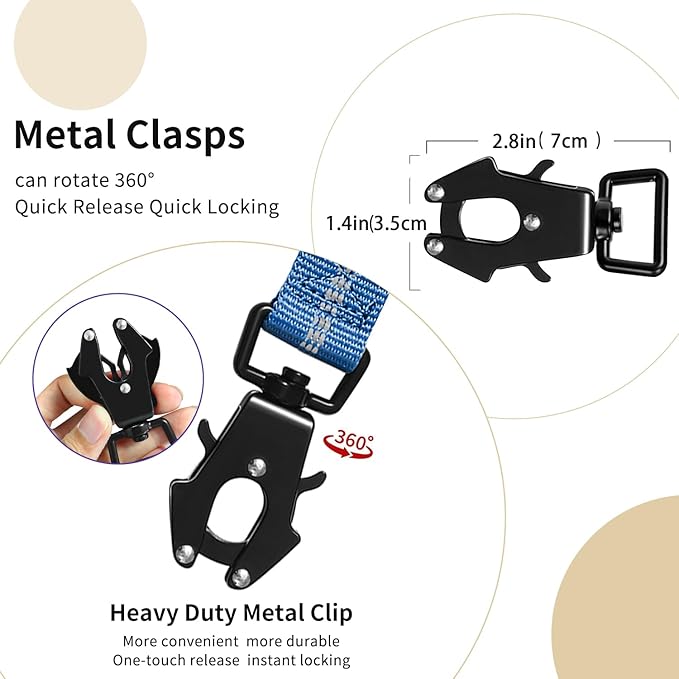 - 【🐕Quick Release Frog Clip 】The 360° Rotating Frog Clip is made of Aviation Aluminum,can hold up to 400 pounds. Quick release and locking dog leash buckle while holding tight under strong pull. 360°rotatable to prevent the dog leash from twisting and knotting.