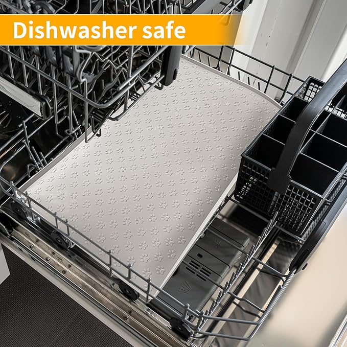 • Easy to Clean & Storage: This pet food mat can be wiped with a cloth or rinsed with water. Dishwasher safe. Soft dog feeder mat is easy to roll up for storage or take outdoors.