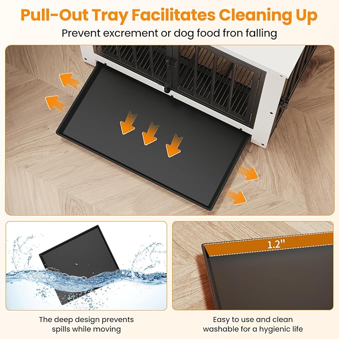 Dog Crate Furniture, Dog Crate End Table for Small and Medium Dogs,Wooden Cage Kennel Furniture Indoor, Modern Dog Crate with Multi-Purpose Removable Tray, Double-Doors Dog Furniture, White
