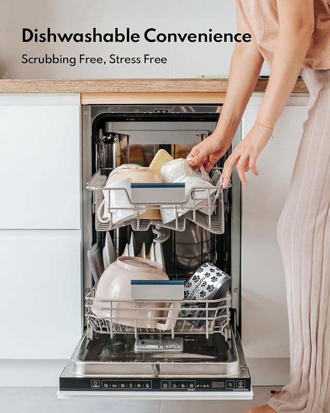 - ๐ฝ๏ธ ๐๐ถ๐๐ต๐๐ฎ๐๐ต๐ฒ๐ฟ ๐๐น๐ฒ๐ฎ๐ป: Tired of routinely scrubbing your dog bowl to get rid of every last morsel of dirt and grime? We've got you covered! Pop our bowl into the dishwasher, and it's instantly good as new without any lingering odors or stains. Remember to remove the silicone grip base before washing.