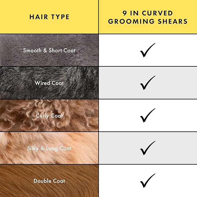 - These curved scissors for dog grooming feature rounded safety tips to prevent nicking the skin, eyes, nose, and ears. Lightweight design provides comfort and prevents hand fatigue while trimming. Curved blade guides shape for cutting. Ideal for at-home grooming or beginner professional groomers.