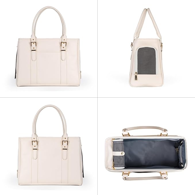 Fashion Pet Carrier Dog Purse Cat Bag Soft-Sided Carriers Travel Airline Approved, Stylish Leather Tote Handbag for Small Animal Puppy Kitten (White)