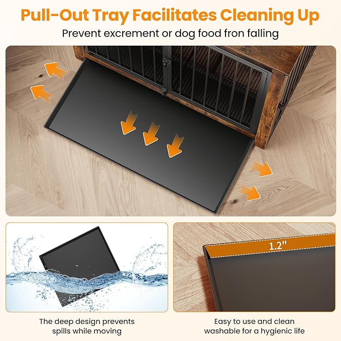 Dog Crate Furniture, Large Dog Crate Furniture, Wooden Cage Kennel Furniture Indoor, Modern Dog Crate with Multi-Purpose Removable Tray, Double-Doors Dog Furniture, Rustic Brown