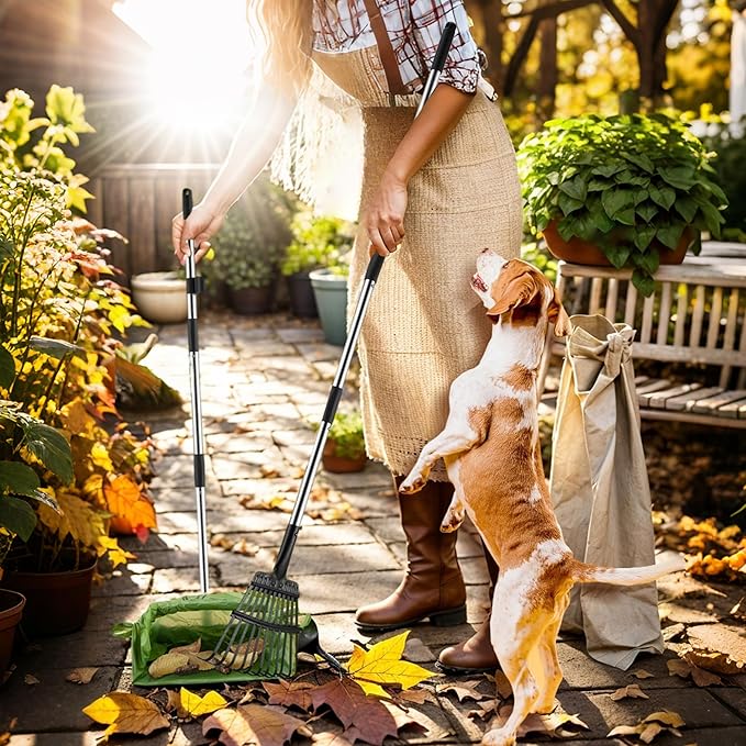 - Efficient Waste Removal: Equipped with an 11-pronged rake for a clean sweep from grass to bag in one go.