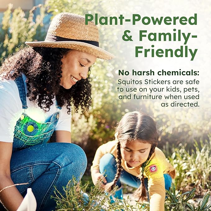 - Skip the sprays and aerosols with our easy-to-use bug stickers that securely adhere to clothing, hats, strollers, beach chairs, and more, without the need for skin contact.