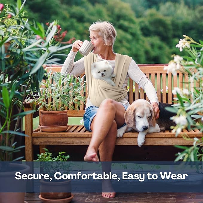 - [SIMPLE SIZE & PERFECT FIT] Please measure your fullest part of your bust and choose your size on the size chart. There are two simple sizes, Regular (S~L) and Plus (XL~3XL). Regardless of your size, our dog carrying sling is designed as small dog carrier up to 20lbs(9kg). The 95% Cotton is extra soft, and the 5% Spandex gives the elasticity which allows our dog sling carrier for small dogs to conform to your pet's shape, ensuring maximum comfort for both you and your pet during use