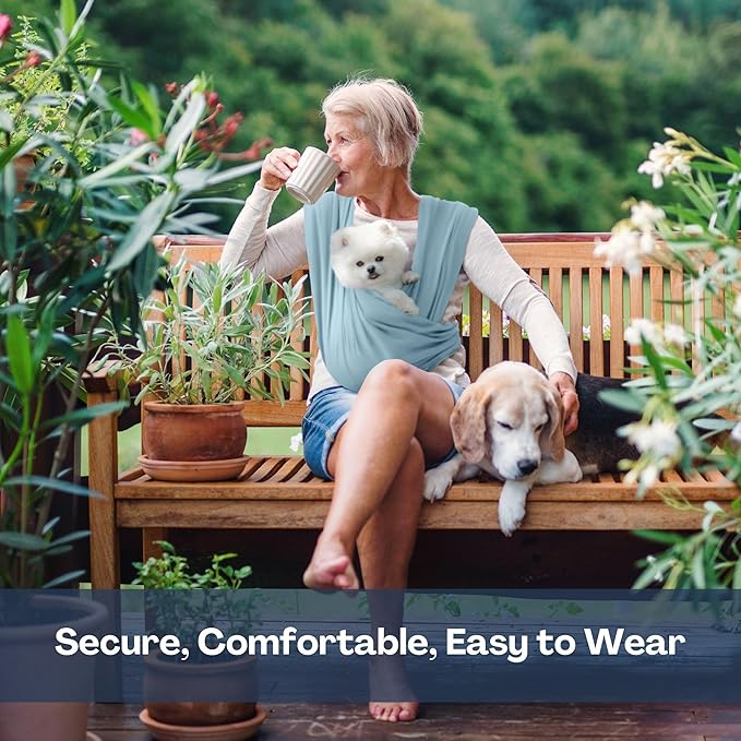 - [SIMPLE SIZE & PERFECT FIT] Please measure your fullest part of your bust and choose your size on the size chart. There are two simple sizes, Regular (S~L) and Plus (XL~3XL). Regardless of your size, our dog carrying sling is designed as small dog carrier up to 20lbs(9kg). The 95% Cotton is extra soft, and the 5% Spandex gives the elasticity which allows our dog sling carrier for small dogs to conform to your pet's shape, ensuring maximum comfort for both you and your pet during use