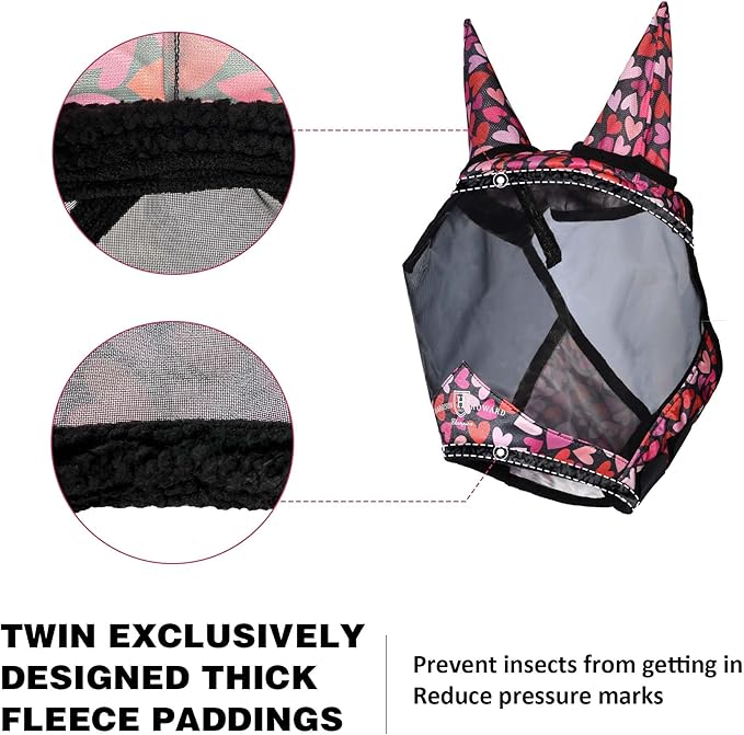 Harrison Howard Pro LumiVista Horse Half Face Fly Mask Large Eye Space with Ears UV Protection for Horse Cute Hearts L