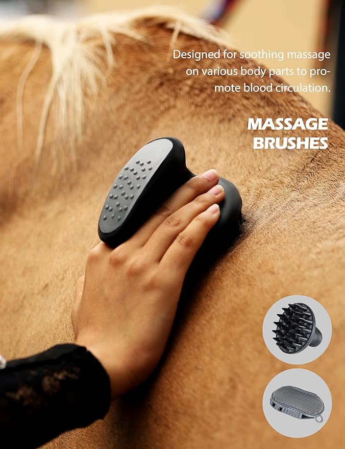 - Durable & Long-Lasting: Made from high-quality materials, the brush set features premium plastic construction with special wear-resistant treatment, ensuring exceptional durability that far surpasses ordinary brushes. These horse brushes effectively remove dirt from the horseโs coat, stimulate blood circulation, and promote natural oil production for a smooth, glossy coat.