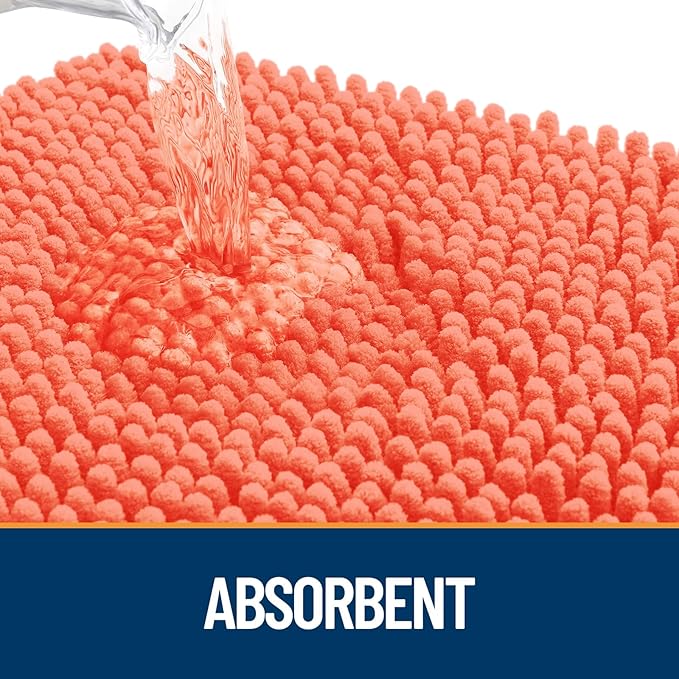 OLANLY Dog Door Mat for Muddy Paws 47x32, Absorbs Moisture and Dirt, Absorbent Non-Slip Washable Doormat, Quick Dry Chenille Mud Mat for Dogs, Entry Indoor Entryway Carpet for Inside Floor, Coral