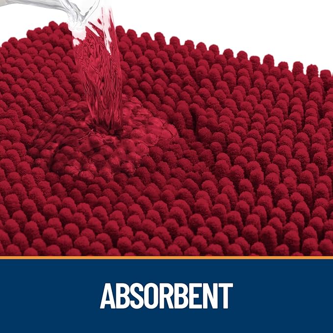 OLANLY Dog Door Mat for Muddy Paws 30x20, Absorbs Moisture and Dirt, Absorbent Non-Slip Washable Doormat, Quick Dry Chenille Mud Mat for Dogs, Entry Indoor Entryway Carpet for Inside Floor, Red