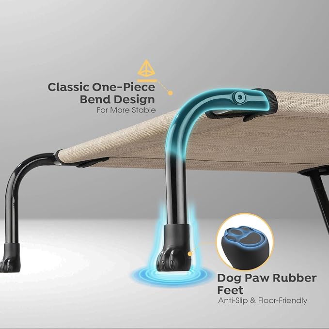 - COOL AND BREATHABLE: The elevated design and mesh fabric allow air to flow, so your pet can enjoy a more comfortable, cleaner, drier and healthier life compared to the ground. The 7.1"/7.9" height of the outdoor dog bed is suitable for dogs of all ages, from puppies to senior dogs.