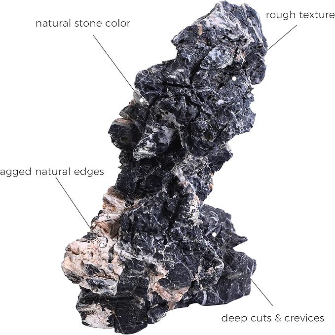 - EASY TO USE & MAINTAIN: The aquarium stone is highly durable, erosion-resistant, and maintenance-free when submerged. Seiryu rock's rough texture and angular edges offer excellent anchor points for the growth of aquatic plants like mosses and ferns, while slowly releasing beneficial minerals to support aquatic life.