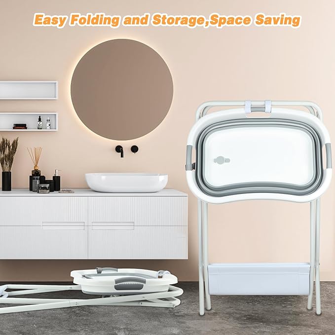 - Portable Dog Bathtub: Both the stand and tub can be easily folded, folded size: 33.5*18.5*104.5 inches.Takes up little space, you can put it in every corner of your home. Easy to carry. Ideal for traveling and camping.