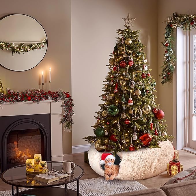 Cat Tunnel with Cat Bed for Indoor Cats, Soft Plush Peekaboo Cat Cave Donut Tunnel, Multifunctional Playground Toys Hideplace for Small Medium Large Kittens, Rabbit, Ferret (Cream White)