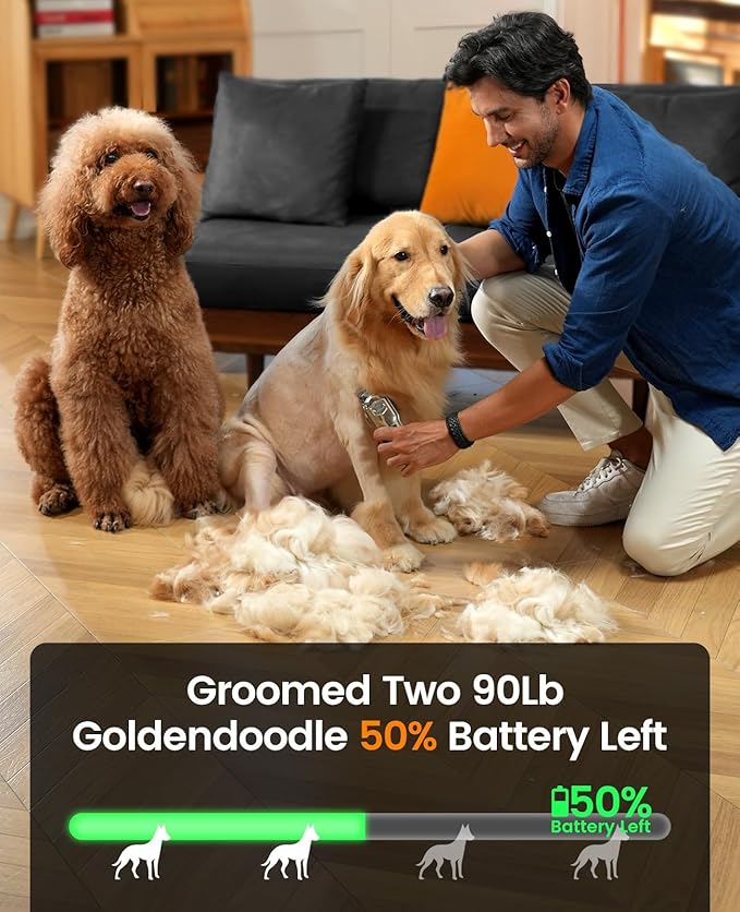 - 𝐑𝐞𝐜𝐡𝐚𝐫𝐠𝐞𝐚𝐛𝐥𝐞 𝐚𝐧𝐝 𝐖𝐢𝐫𝐞𝐥𝐞𝐬𝐬 𝐔𝐬𝐞: The oneisall Dog Clippers with Powerhouse Motor (6,800 RPM), Tames Thick Fur Fast, slicing through even the thickest coats with ease and efficiency. Boasting a built-in 2,000mAh battery, a full charge gives you a solid 4 hours of cord-free freedom, perfect for grooming sessions anywhere around your home or even out in the open air