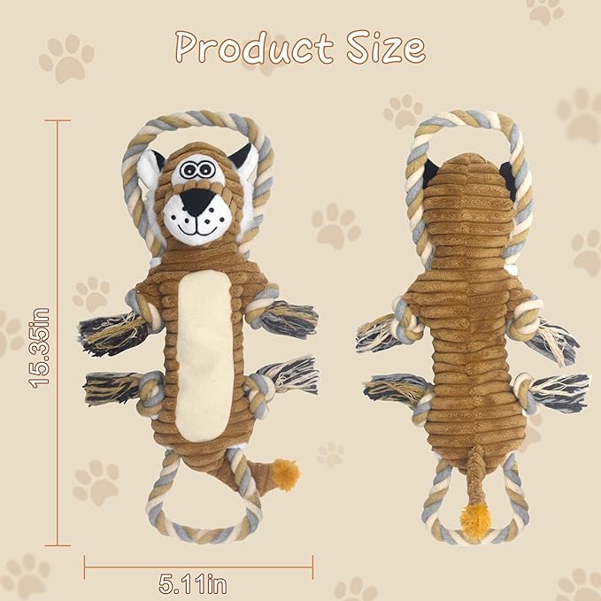 - Lion Stuffed Dog Toys: Dog chew toys have squeakers built-in voice device the toy head, and make a squeaky sound when squeezed and bite and will attract dog's attention, and help release your pet's anxiety and pressure.