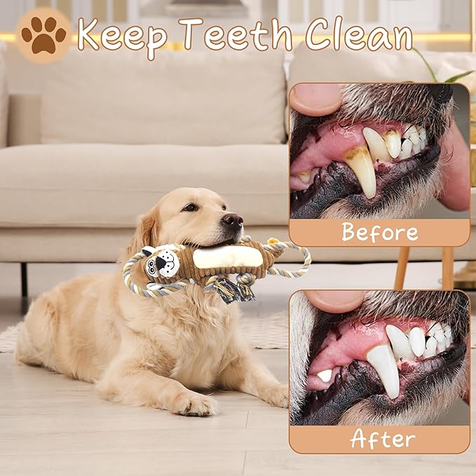 Squeaky Dog Toys, Interactive Tug of War Puppy Toys, Funny Plush Dog Chew Toys, Stuffed Dog Toys for Small,Medium and Large Dogs - Lion