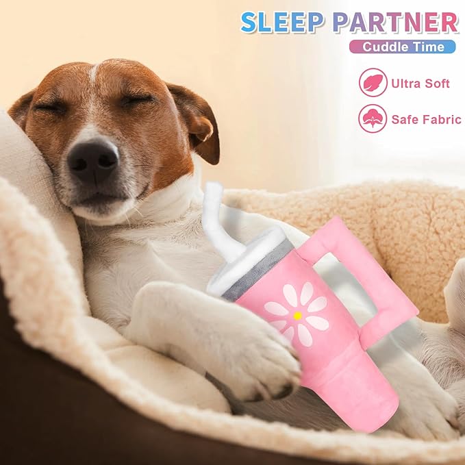 - [Funny Tumbler Design] Enjoy a playful twist with a daisy trendy tumbler-shaped dog toy, which is the same shape as the popular water cups on the market today, featuring a cute handle and straw for added fun during playtime. And the fashionable shape is perfect for you to match your dog with your photo shoots and scenarios