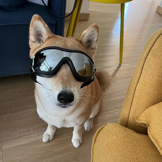 Dog Sunglasses for Large and Medium Breed, Dog Goggles for Large Dogs, Sun Protection, Windproof, Waterproof, Dustproof and Anti-Fog with Adjustable Strap for Driving, Motorcycle, Black